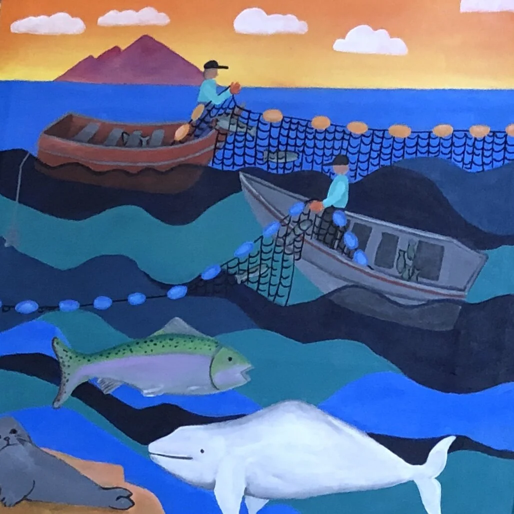 Lesson 5: Watercolor Coloring Book: Once the mural designs are finished from all seven schools we will print a coloring book with them on watercolor paper. Students can watercolor in their own version of the murals and see the work from students all over Alaska!
